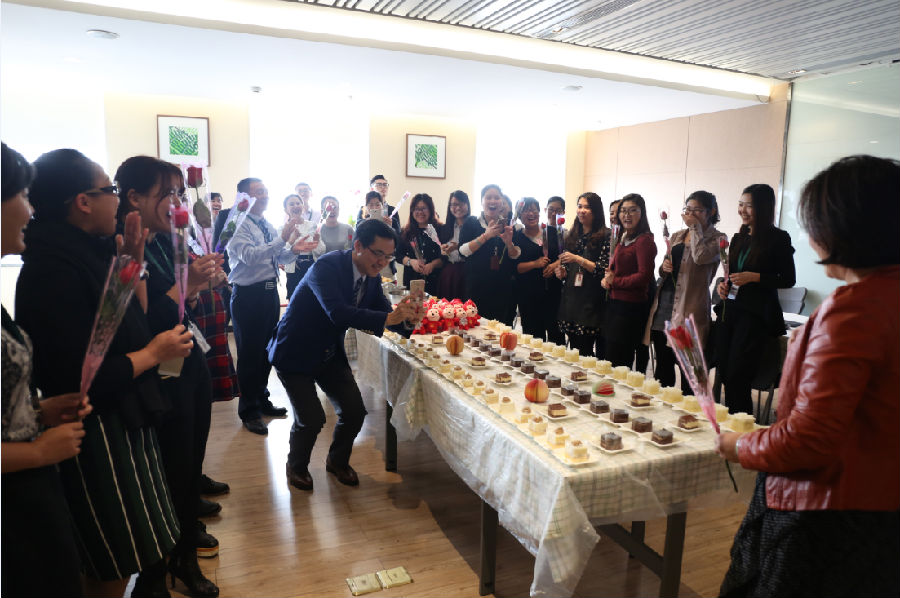 精致的甜点、可爱的玩偶和美丽的玫瑰,在公司工会及行政部的精心准备下,活动室内浪漫、愉悦的节日氛围甚是浓厚。女同事们在享用甜点的同时还可以欣赏男同事们亲手献上的玫瑰,尽情地享受“女神”待遇。活动期间,集团与大家进行了亲切的交流,对女性在生活、工作中举足轻重的地位表示充分的肯定,另外, 也表达了衷心的节日祝福,与同事们共度了一个美好的下午茶时间。活动结束后,同事们也纷纷拍照上传至微信,分享传递喜悦与正能量。